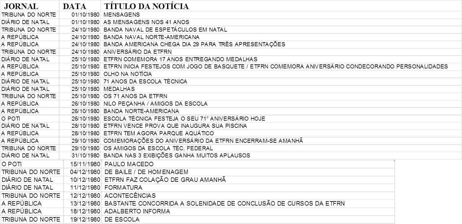 O Portal da Memória resultou do Projeto "CEFET-RN a caminho do Centenário", iniciado em 2006 pela equipe de Comunicação Social da Unidade Sede - Natal. Sua finalidade é compartilhar a memória do IFRN, instituição centenária, criada em 1909, como Escola de Aprendizes Artífices de Natal. Contato: arquivo.cnat@ifrn.edu.br.