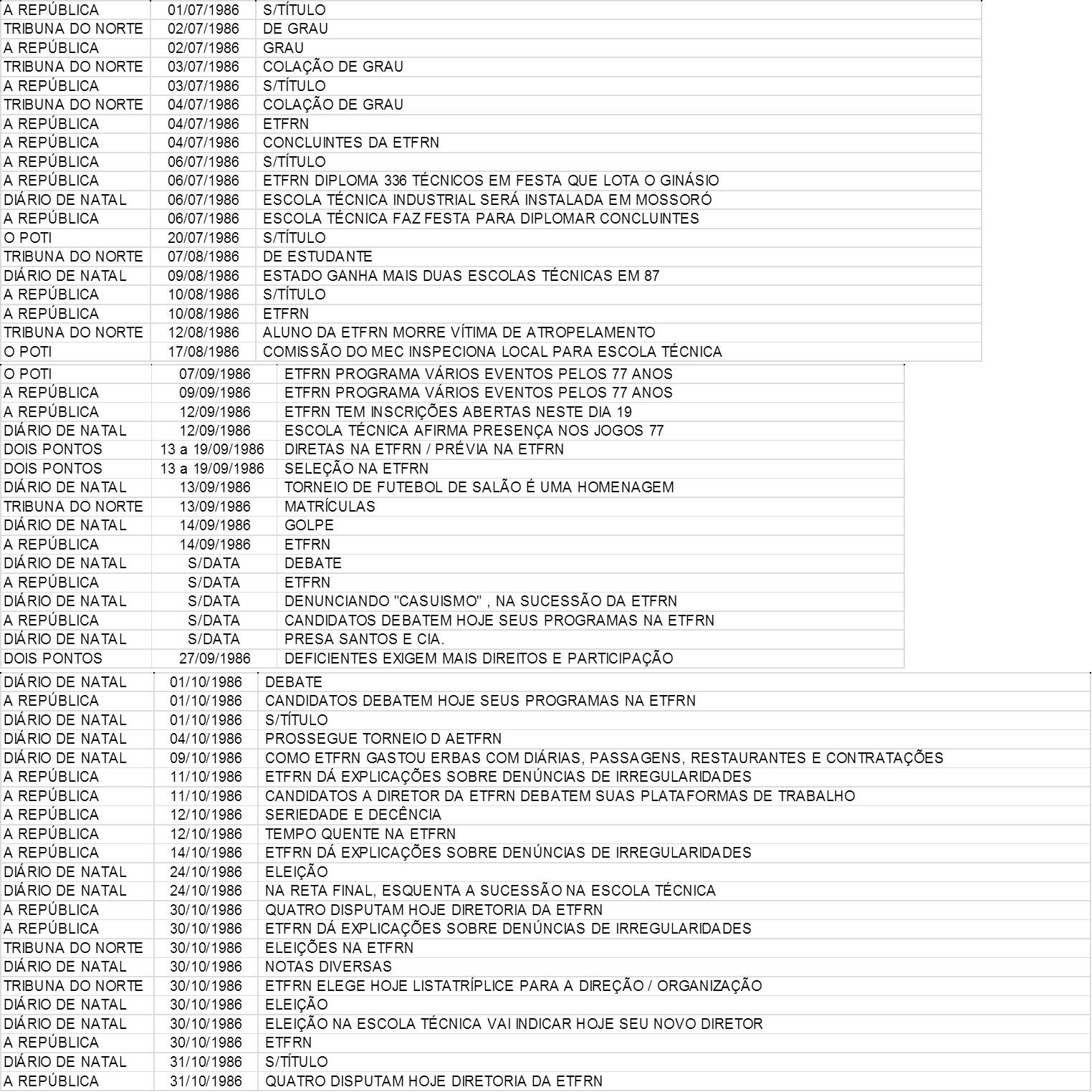 O Portal da Memória resultou do Projeto "CEFET-RN a caminho do Centenário", iniciado em 2006 pela equipe de Comunicação Social da Unidade Sede - Natal. Sua finalidade é compartilhar a memória do IFRN, instituição centenária, criada em 1909, como Escola de Aprendizes Artífices de Natal. Contato: arquivo.cnat@ifrn.edu.br.